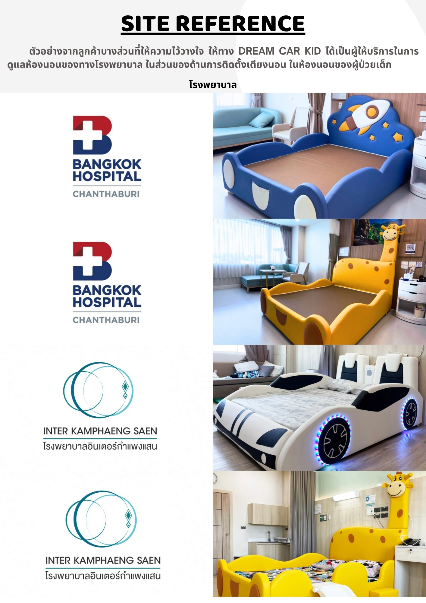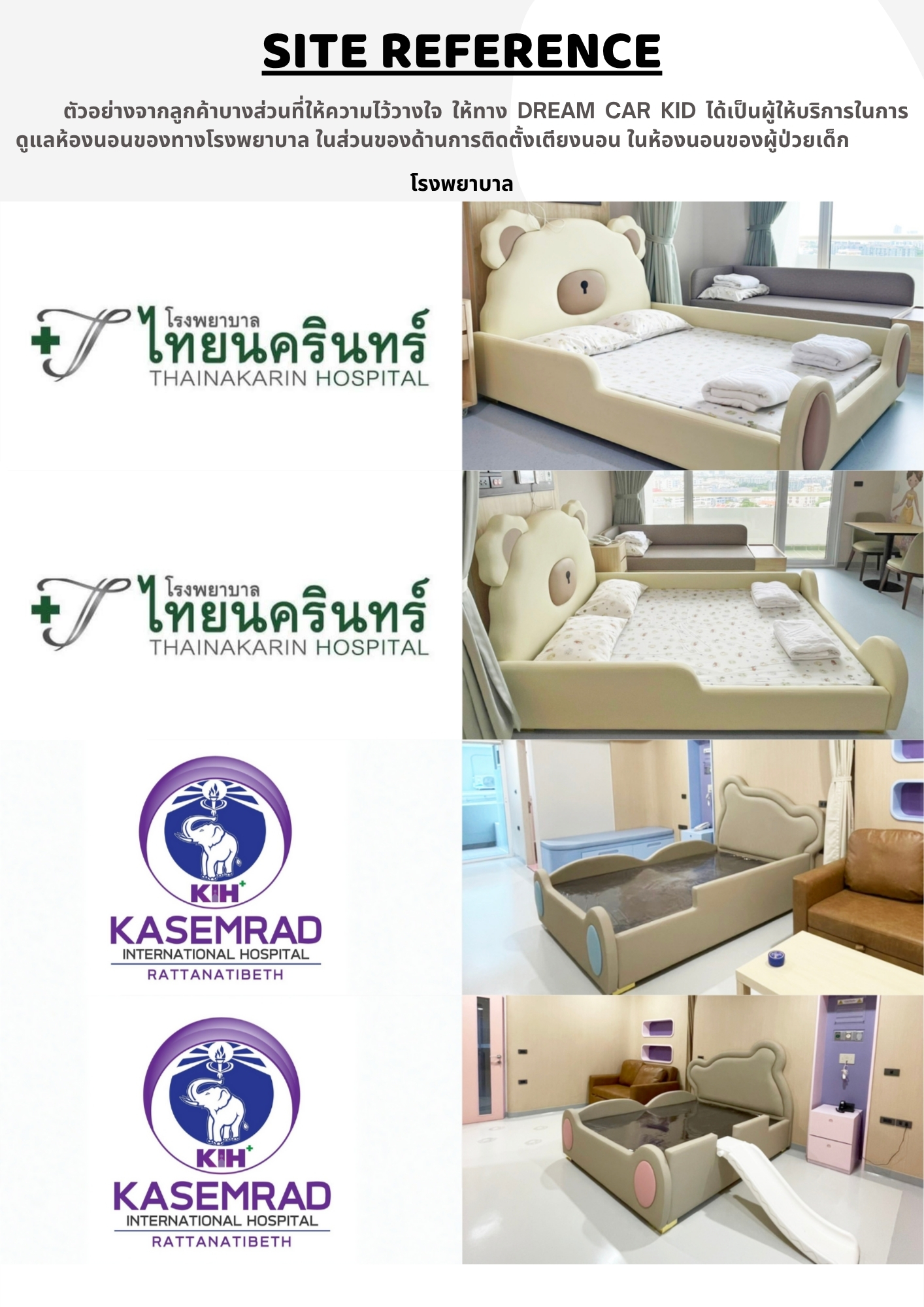 👉 ออปชั่นเตียง : สามารถเพิ่มลดตามความเหมาะสมของห้องได้ สอบถามราคาออปชั่นตามที่ต้องการได้ที่ Line : @dreamcarkid