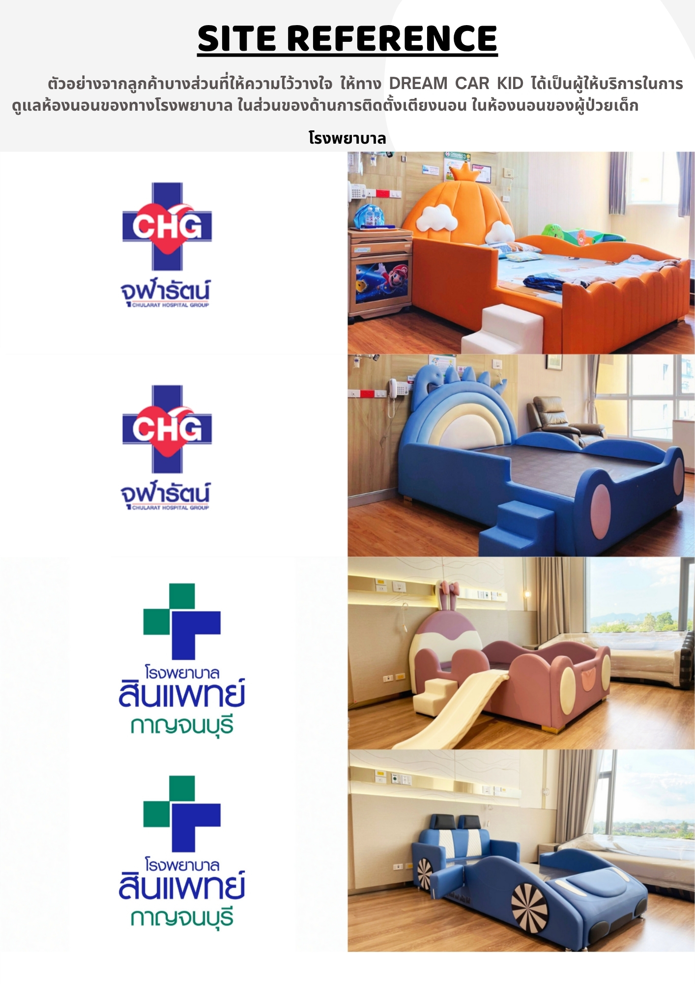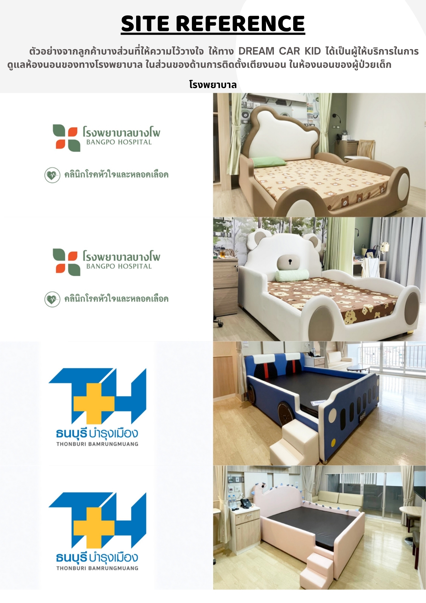 👉 ออปชั่นเตียง : สามารถเพิ่มลดตามความเหมาะสมของห้องได้ สอบถามราคาออปชั่นตามที่ต้องการได้ที่ Line : @dreamcarkid
